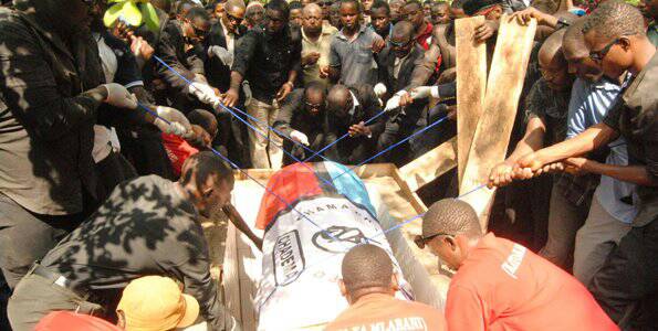 Mwili wa Marehemu Godfrey J. Lwena aliyeuwawa kikatili kwa kukatwakatwa na mapanga, akipewa heshima za mwisho Mlimba Mkoani Morogoro leo tarehe 26/2/2017.